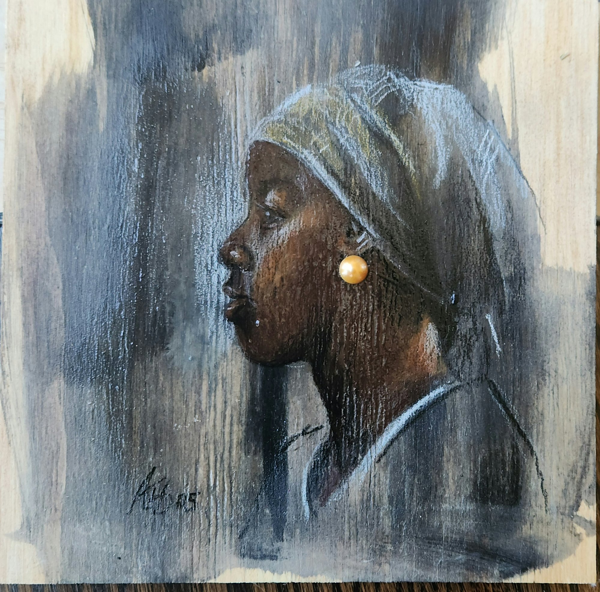ColorPencil on Wood Original 10x9 sketch
