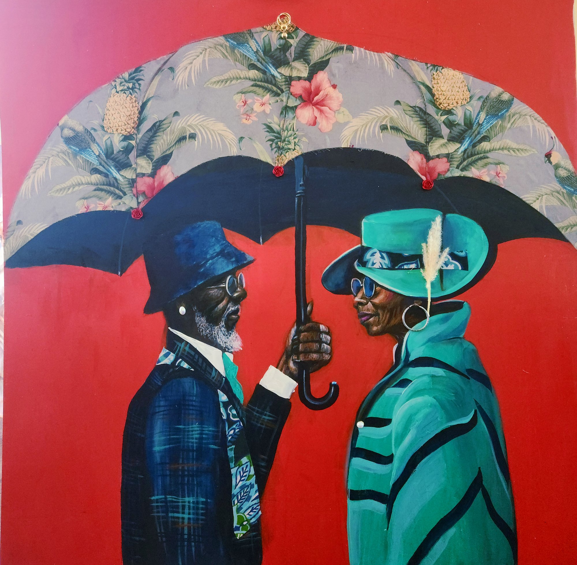 48x48 ColorPencil Acrylic and fabrics on wood Original